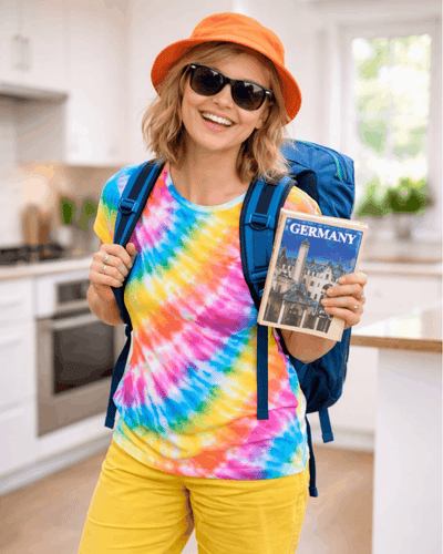 Du brauchst: bunte Kleidung + Tasche/Rucksack + Sonnenbrille + evtl. einen alten Reiseführer